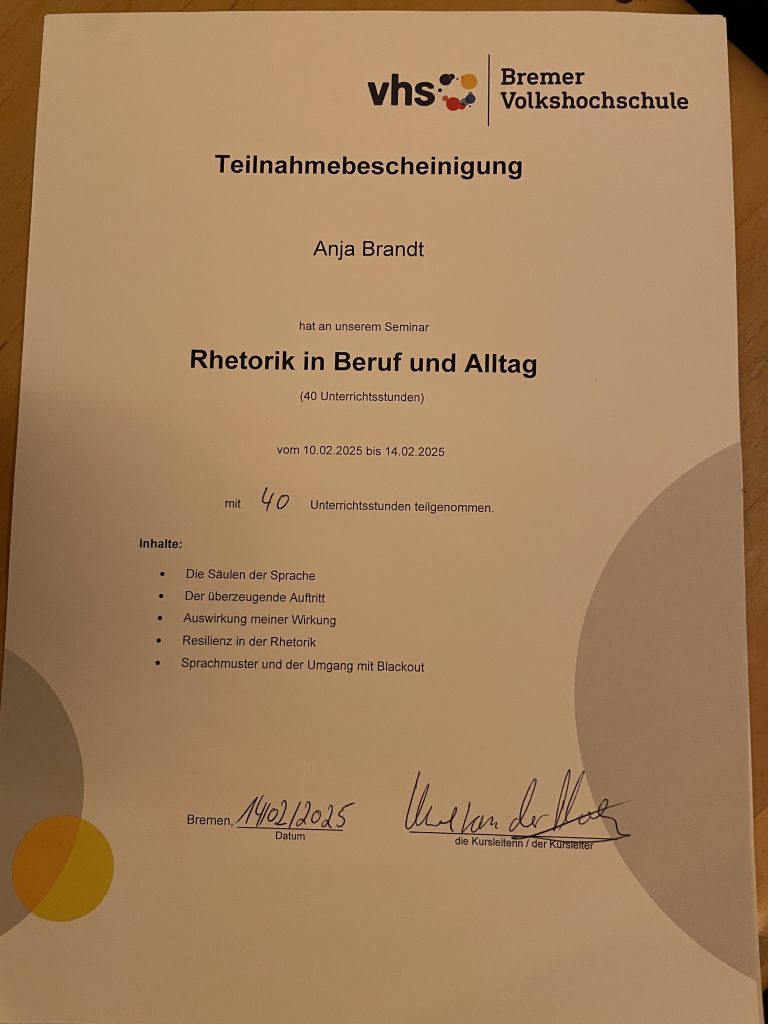 • Mehrtägiger Intensiv-Kurs, „Rhetorik – Frei sprechen“